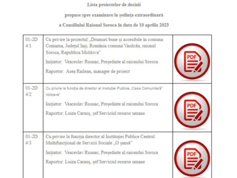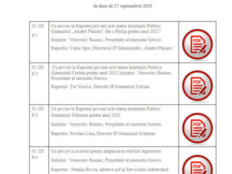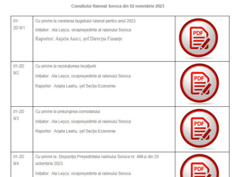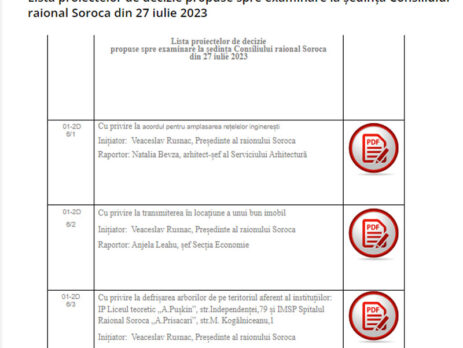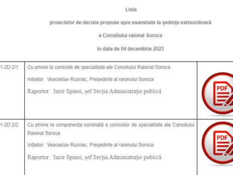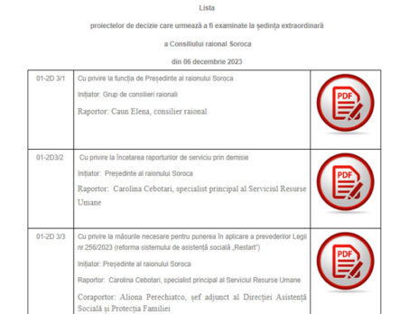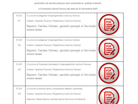 21 decembrie 2023/proiecte de decizie pentru ședința ordinară a Consiliului raional Soroca