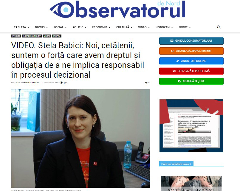 – Principiul democratic de guvernare de jos în sus este unul fundamental în dezvoltarea durabilă a unei comunități și a unui stat în ansamblu, iar această abordare tot mai des este în topul discuțiilor publice pe arena internațională. Deși în Republica Moldova există un cadru legal care asigură participarea cetățenească în procesul decizional, inclusiv accesul la informațiile din cadrul activității autorităților publice, necesitatea de a promova aceste drepturi în rândul cetățenilor, pe de o parte, iar de pe cealaltă parte, cetățenii și sectorul asociativ sunt insuficient de activi pentru a-și realiza aceste drepturi. De cele mai dese ori, aceasta se datorează sau din cauza neîncrederii în guvernarea locală, regională sau centrală, sau din lipsa unor practici pozitive care ar servi ca modele și posibilități de reaplicare pentru participarea în procesul decizional.