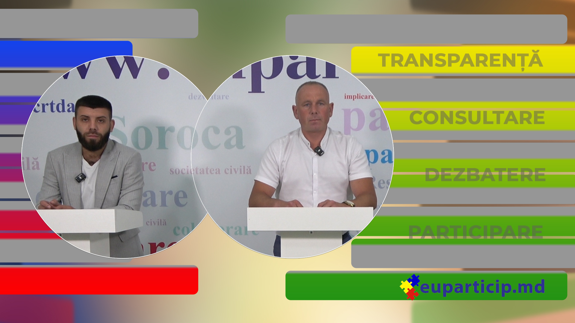 Emisiunea este difuzată pe platforma euparticip.md de secretariatul Consiliului pentru Participare din raionul Soroca – Centrul de Resurse pentru Tineri și Femei DACIA, în cadrul Proiectului ”Facilitarea participării civice în procesul decizional”, implementat cu suportul oferit de către Fundația Est-Europeană din resursele acordate de Biroul de Cooperare al Elvetiei și Suedia.